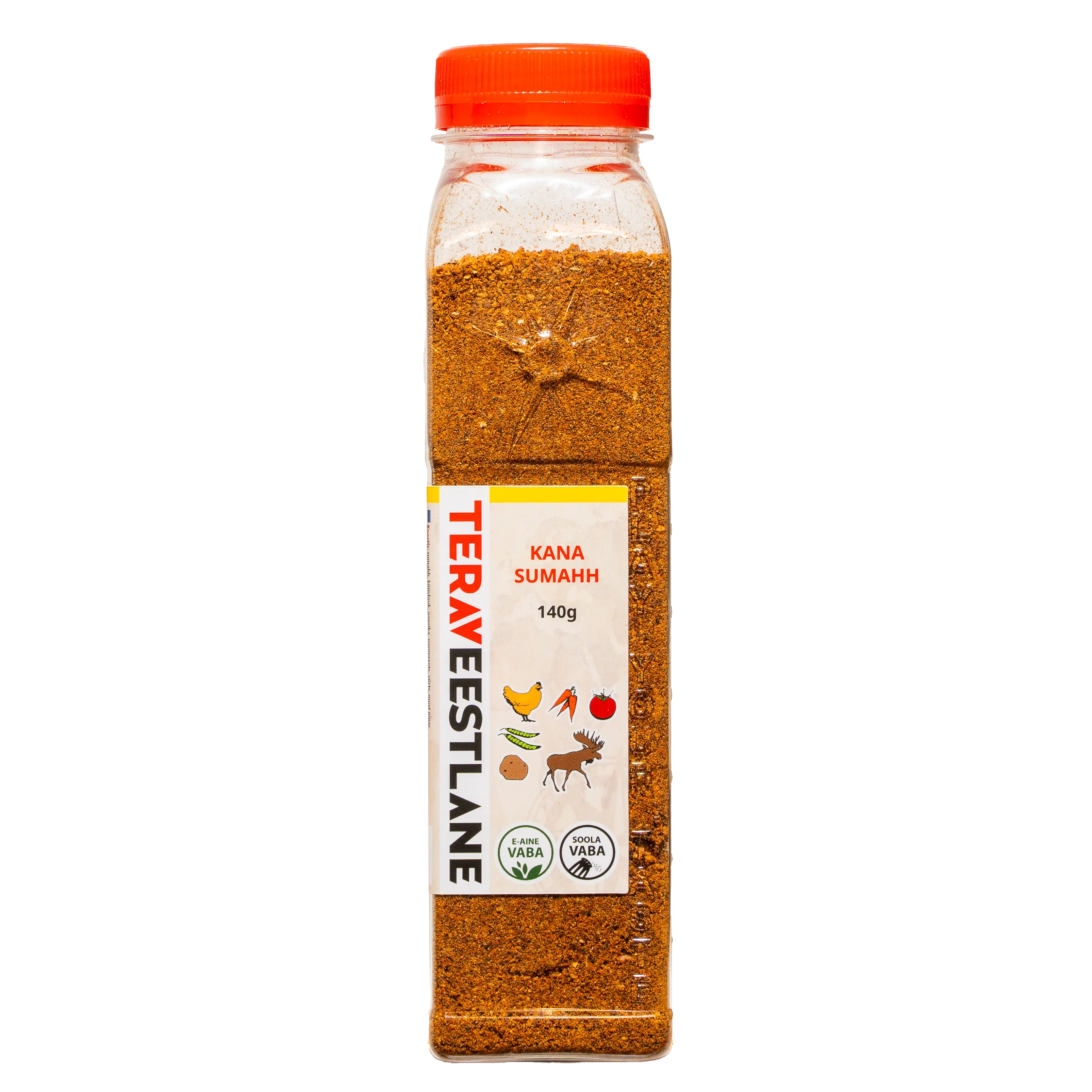 Ainesosat: sumakki, valkosipuli, paprika, pomeranssi, maustepippuri, mustapippuri. KANA SUMAKKI luonnollinen mausteseos antaa happaman maun joka tulee sumakista. Pomeranssi ja mausteneilikka täydentävät mustapippuria ja näin tulee ihan erilainen maku, joka sopii suurimman osan valkoisen lihan kanssa – kana, ankka, kalkkuna, hanhi. Kokeile salaatteihin, kasviksiin. Terav Eestlane Kana Sumakki on juuri luotu yksitoikkoisen valkoisen lihan maustamiseen, jotta voit nauttia päivittäisestä luonnollisesta ruoasta niin, että koko perheelle maistuu.