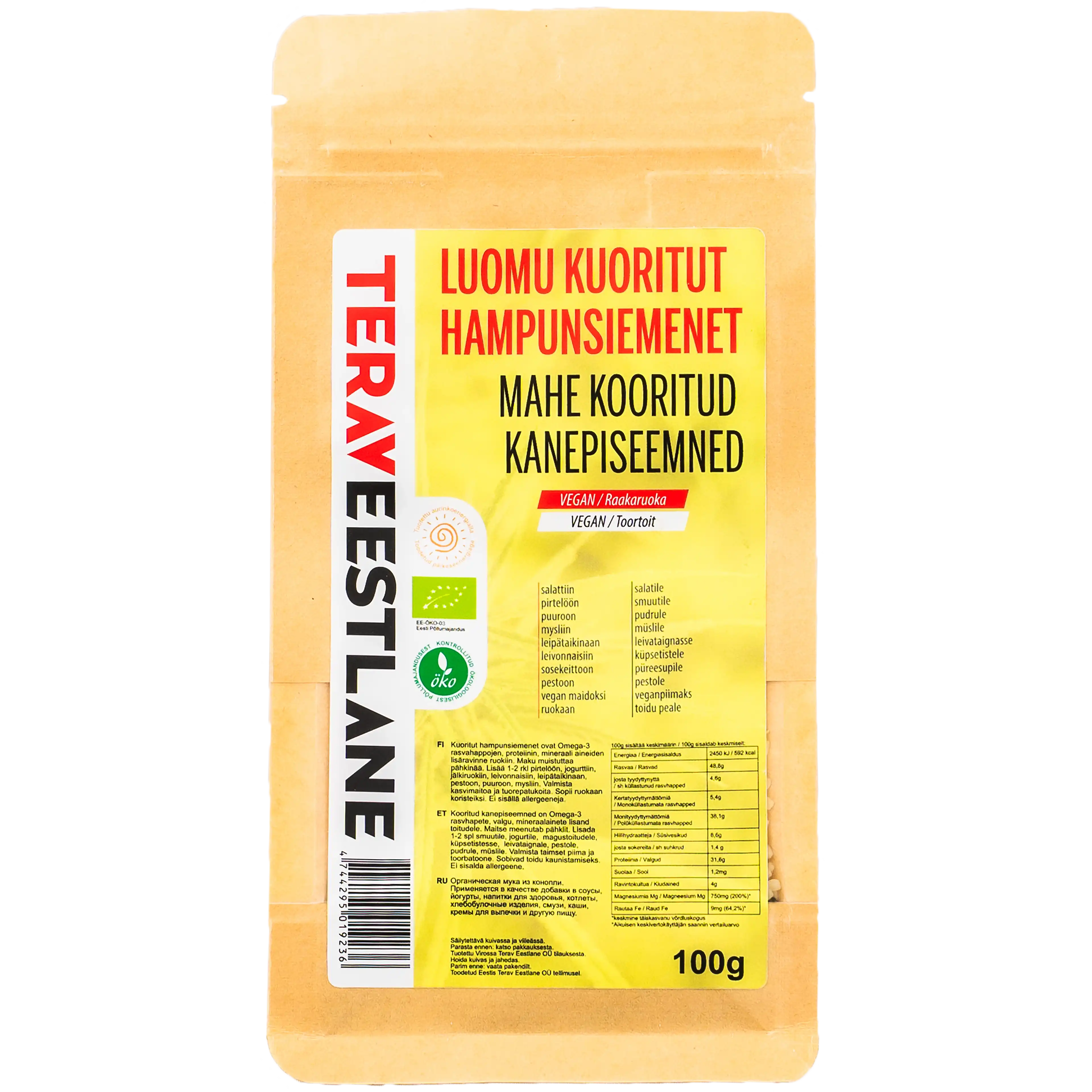 Kuoritut hampunsiemenet ovat Omega-3 rasvahappojen, proteiinin, mineraali aineiden lisäravinne ruokiin. Maku muistuttaa pähkinää. Lisää 1-2 rkl pirtelöön, jogurttiin, jälkiruokiin, leivonnaisiin, leipätaikinaan, pestoon, puuroon, mysliin. Valmista kasvimaitoa ja tuorepatukoita. Sopii ruokaan koristeiksi. Ei sisällä allergeeneja. Keskimäärin 100g sisältää: energiaa 2450 kJ / 592 kcal, rasvoja 48,8g, joista tyydyttyneitä rasvahappoja 4,6g kertatyydyttymättömiä rasvahappoja 5,4g monityydyttymättömiä rasvahappoja 38,1g hiilihydraatteja 8,6g, joista sokereita 1,4 g proteiineja 31,6g suolaa 1,2mg kuituja 4g magnesiumia Mg 750mg (200%)* rautaa Fe 9mg (64,2%)**keskimääräinen aikuisen vertailuaines.