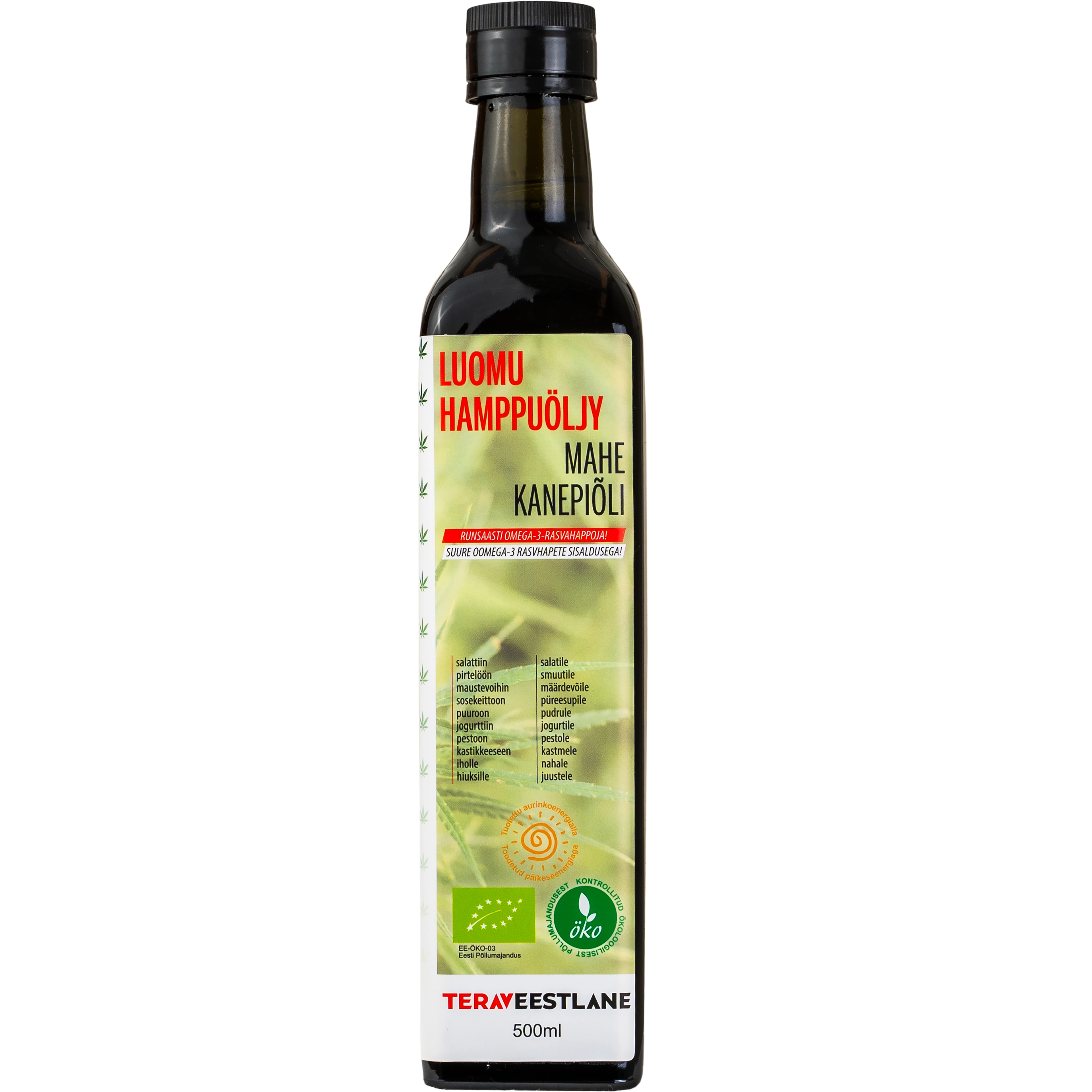 Kylmäpuristettu Hamppuöljy sisältää runsaasti omega-3-rasvahappoja. Sisältää alfalinoleenihappoa (ALA) 22,8/100g, joka auttaa pitämään kolesterolitason normaalina. Hyödyllinen vaikutus saadaan kun päiväannostus on 2g ALA-ta Päiväannostus 1 rkl (19g). Maku muistuttaa pähkinää. Kylmäpuristettu, raffinoimaton Ei sovi kuumennukseen ! Salattiin, pirtelöön, maustevoihin, sosekeittoon, puuroon, jogurttiin, pestoon, kastikkeeseen, iholle, hiuksille.