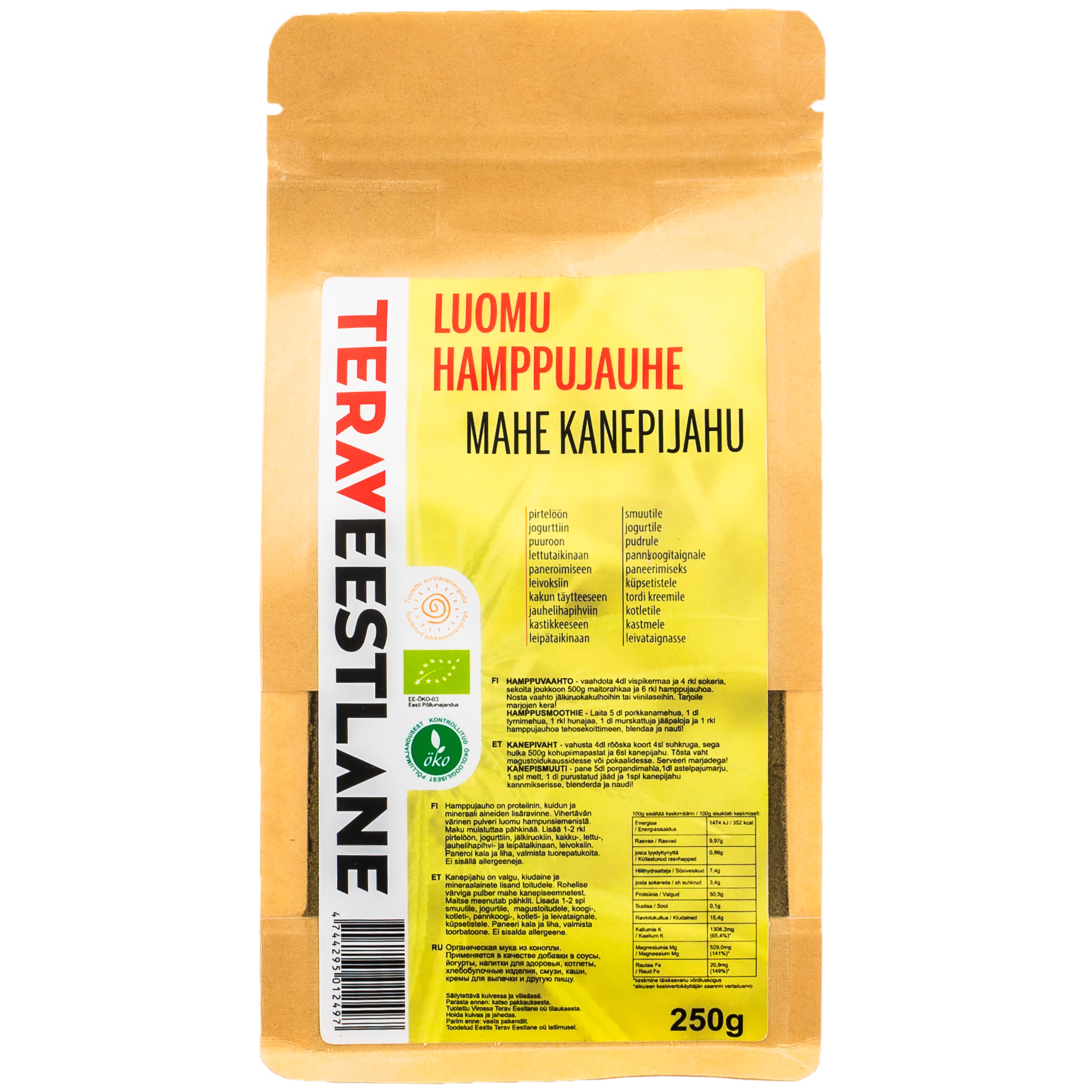 Hamppujauho on proteiinin, kuidun ja mineraali aineiden lisäravinne. Vihertävän värinen pulveri luomu hampunsiemenistä. Maku muistuttaa pähkinää. Lisää 1-2 rkl pirtelöön, jogurttiin, jälkiruokiin, kakku-, lettu-, jauhelihapihvi- ja leipätaikinaan, leivoksiin Paneroi kala ja liha, valmista tuorepatukoita. Ei sisällä allergeeneja.