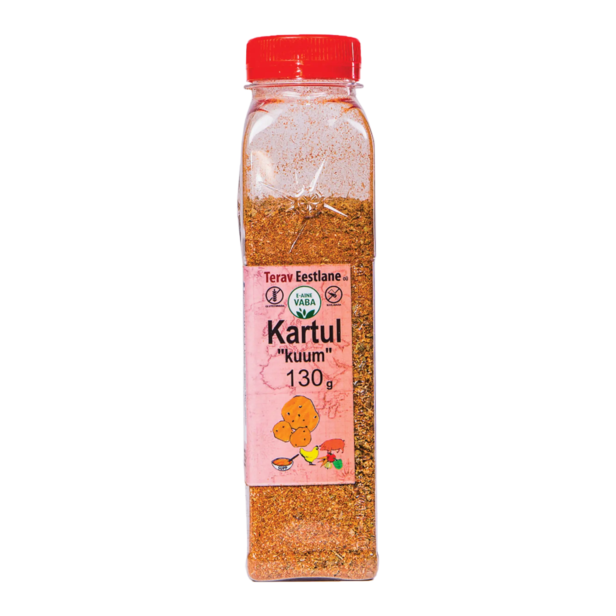 Ainesosat: valkosipuli, kumina, cayennepippuri, oregano. KARTUL KUUM on terävä luonnollinen mausteseos perunalle, bataatille. Perunat kuorella tai ilman, uunissa-, pannulla-, keitettynä, grillattuna – siitä Terav Eestlane KARTUL KUUM-a tykkää. Perunalla oli ja on varma paikka ruokapöydällä.