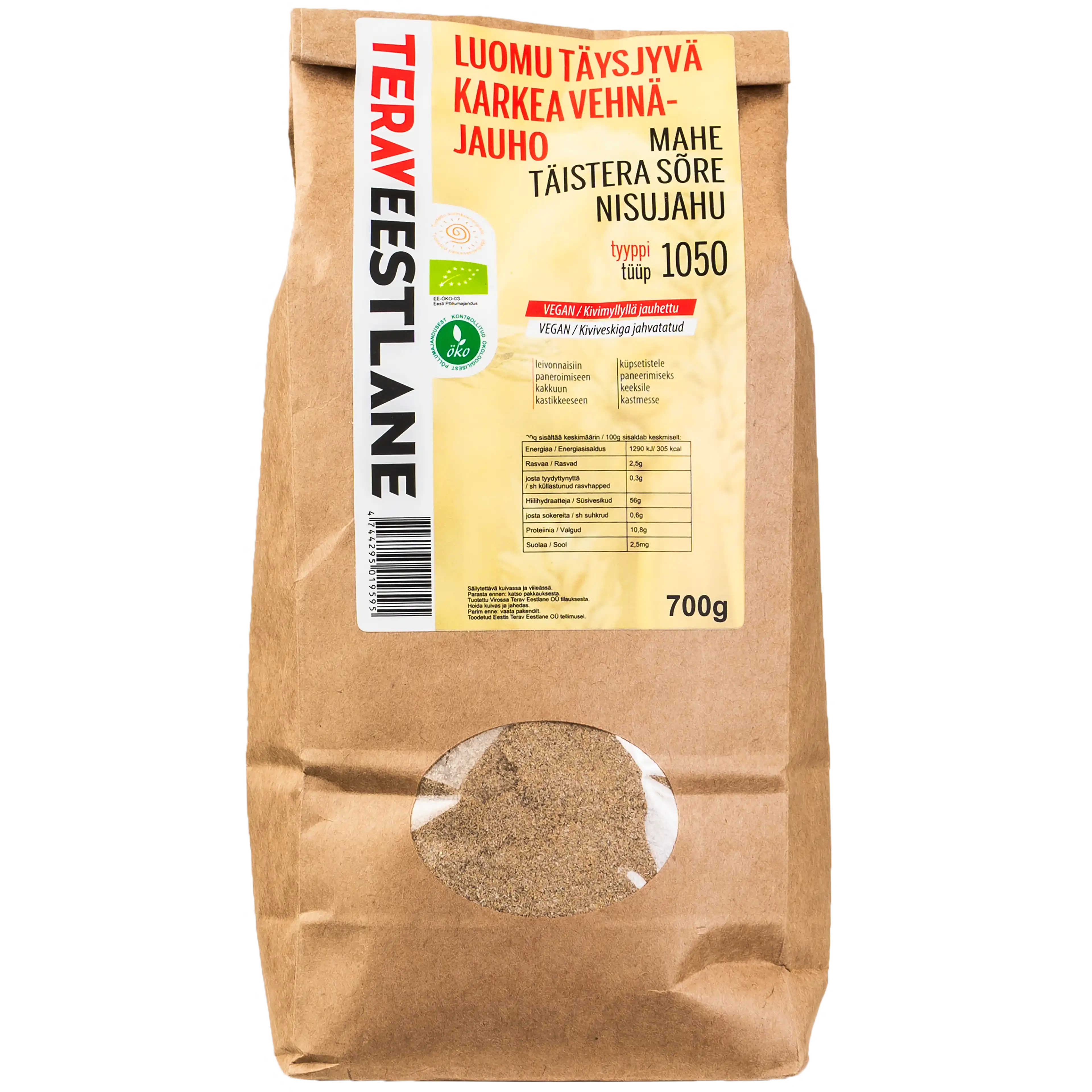 TÄYSJYVÄ KARKEA VEHNÄJAUHO 700g tyyppi 1050 luomu Terav Eestlane