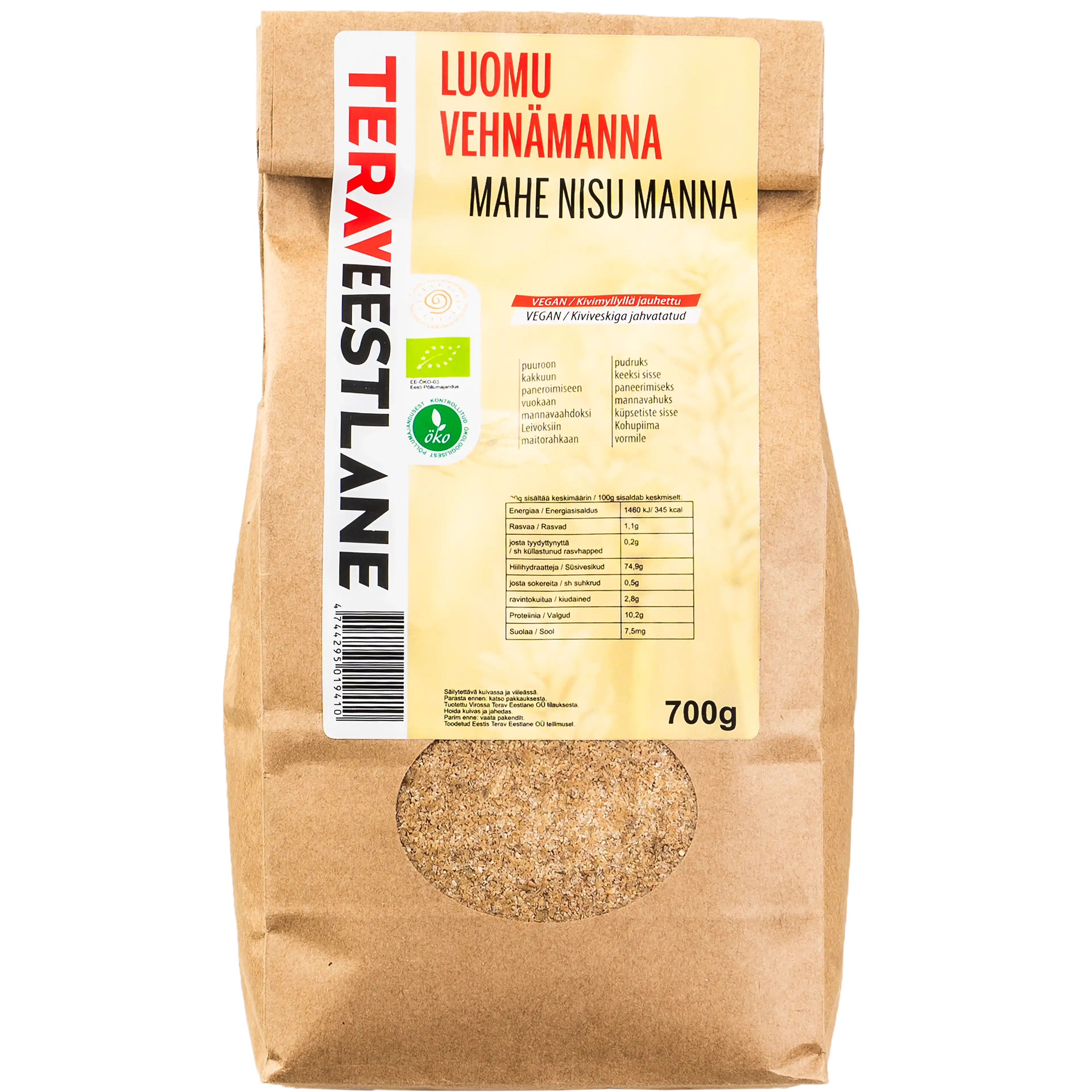 Vehnäjauhoa tyyppi 405 700g kivimyllyllä jauhettu luomu Terav Eestlane